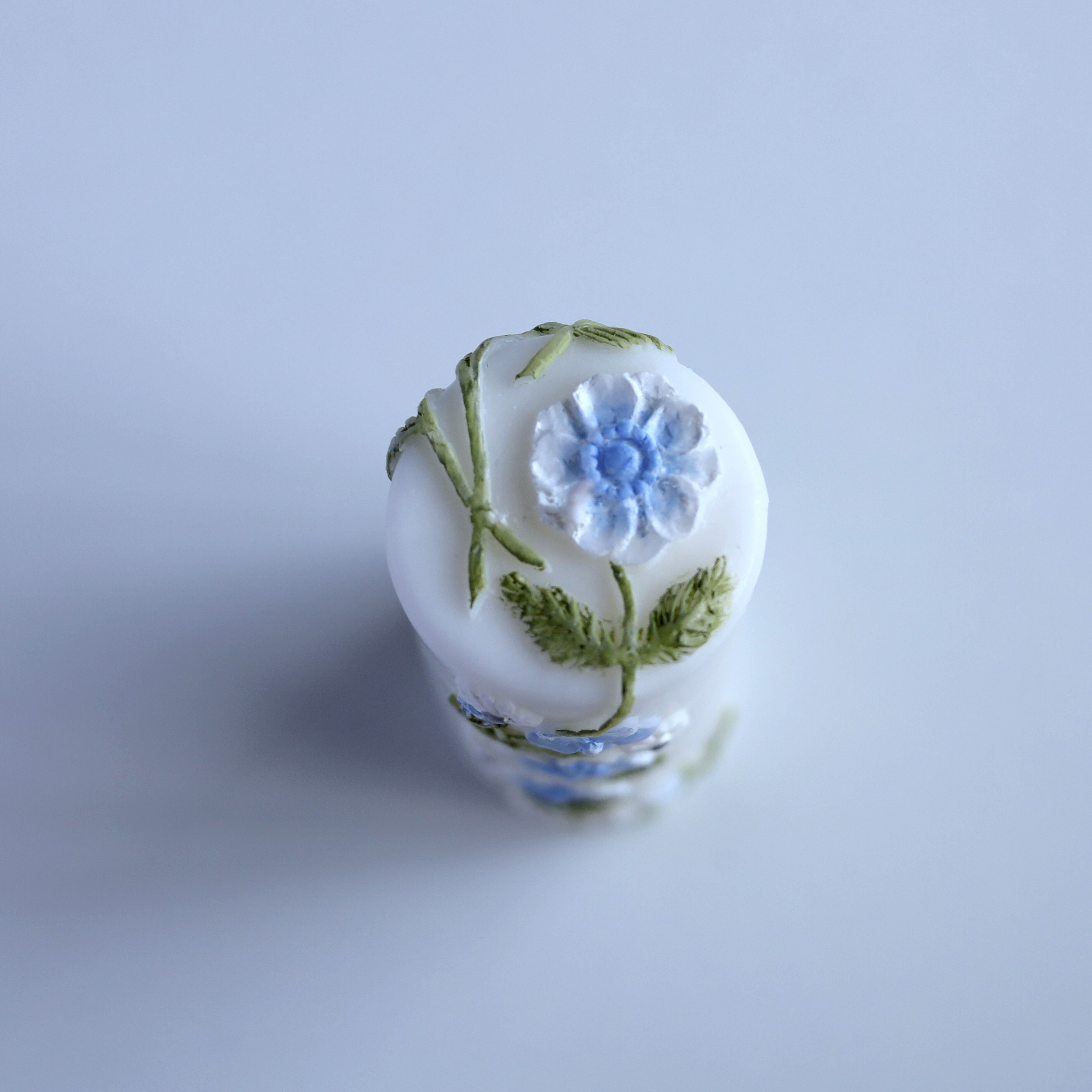 レリーフキャンドル「蝶とアネモネの園」ホワイト×ブルー