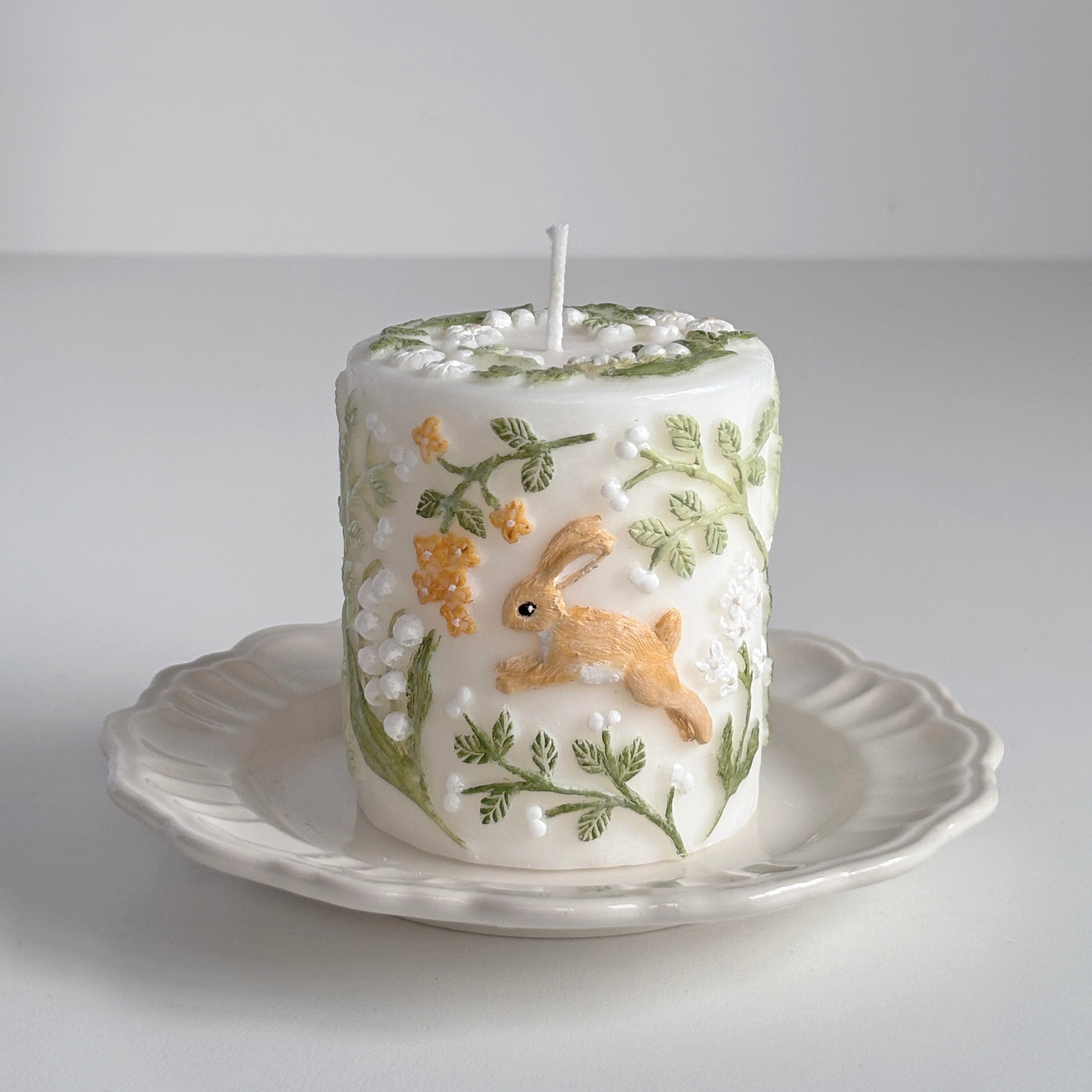 アイボリーベースのキャンドルに、うさぎはオレンジ、