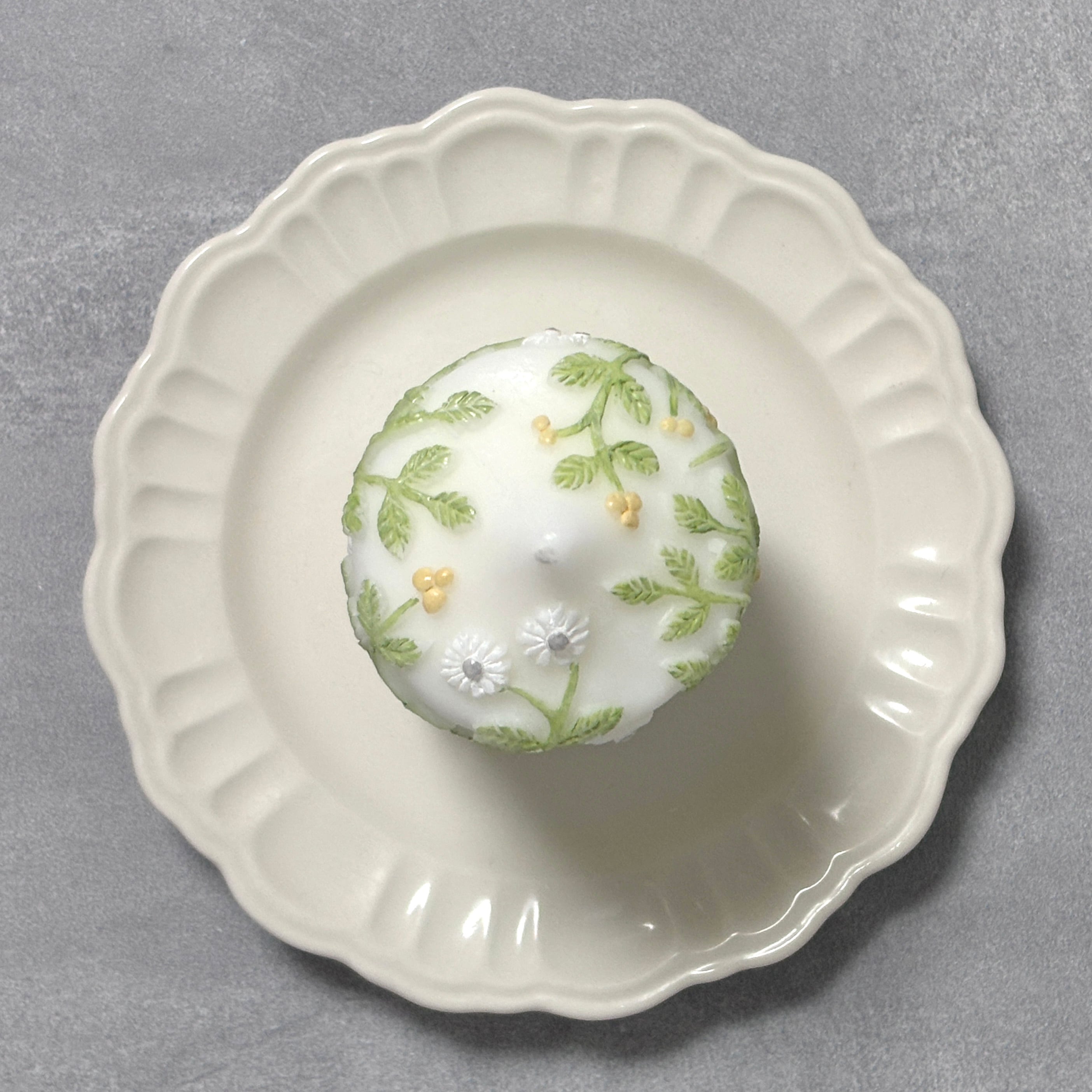 繊細な植物とかわいいうさぎのレリーフを施したキャンドルです。