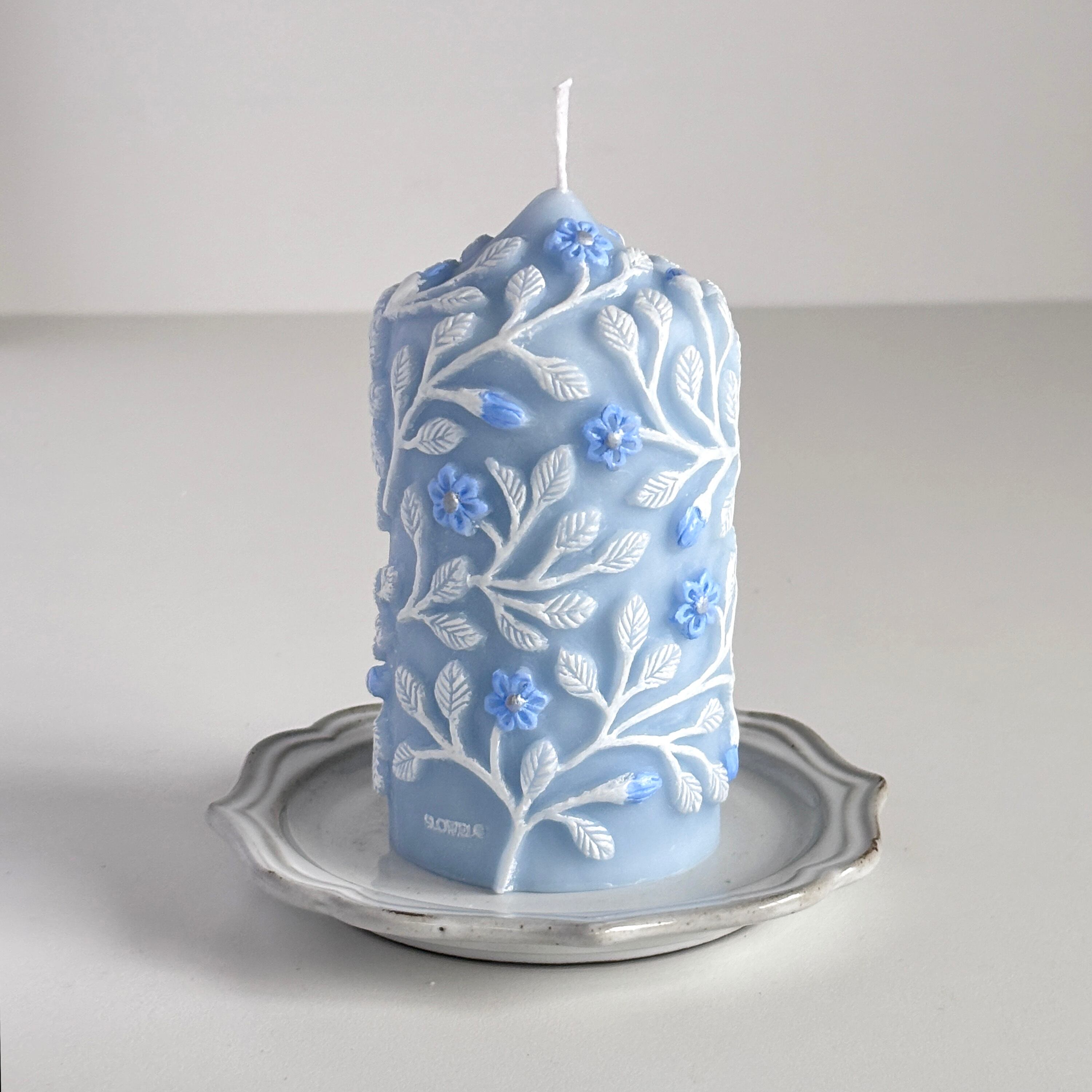 「精神の美」という花言葉をもつクレマチスが調和した気品あるキャンドルです。