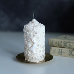 繊細な植物とかわいいうさぎのレリーフを施したキャンドルです