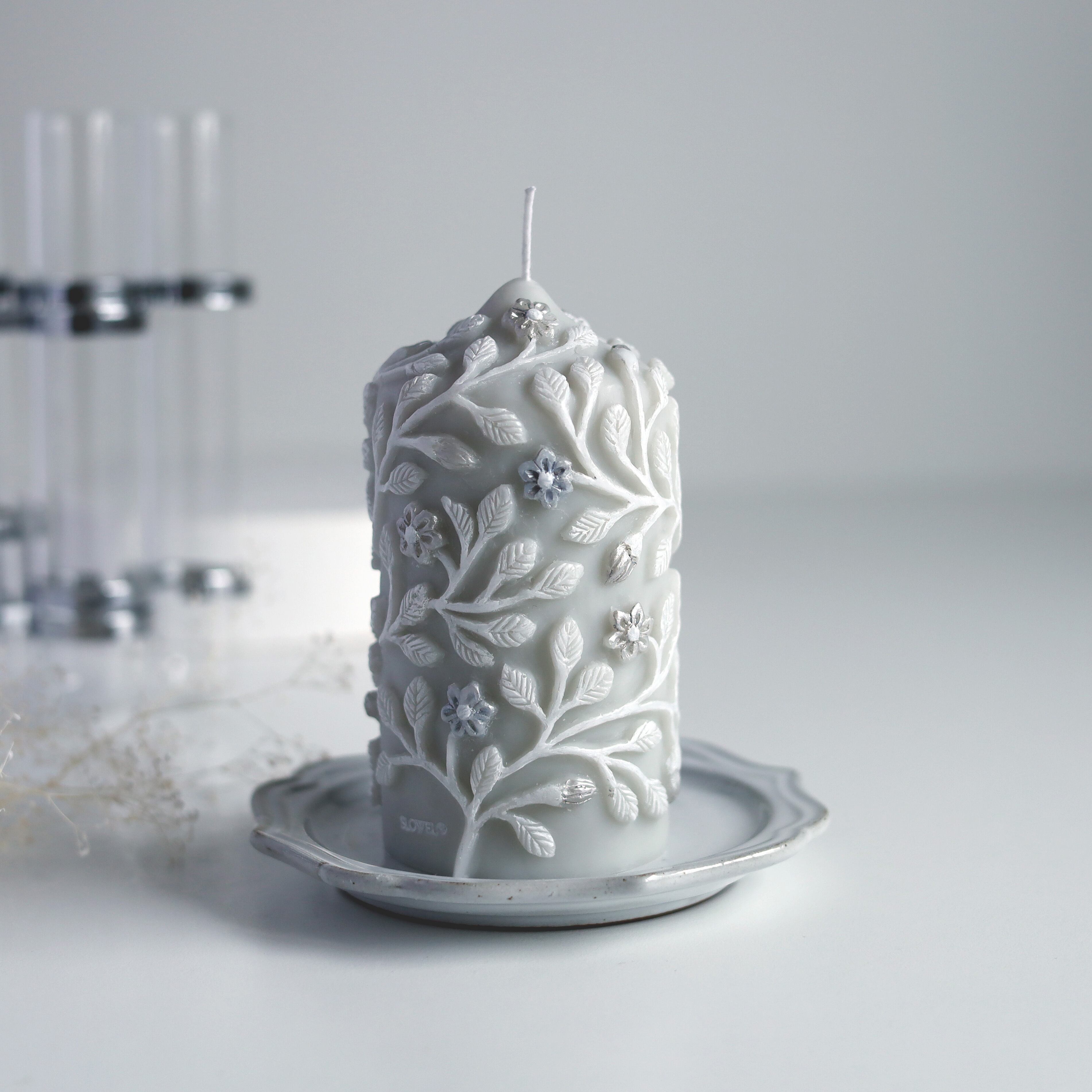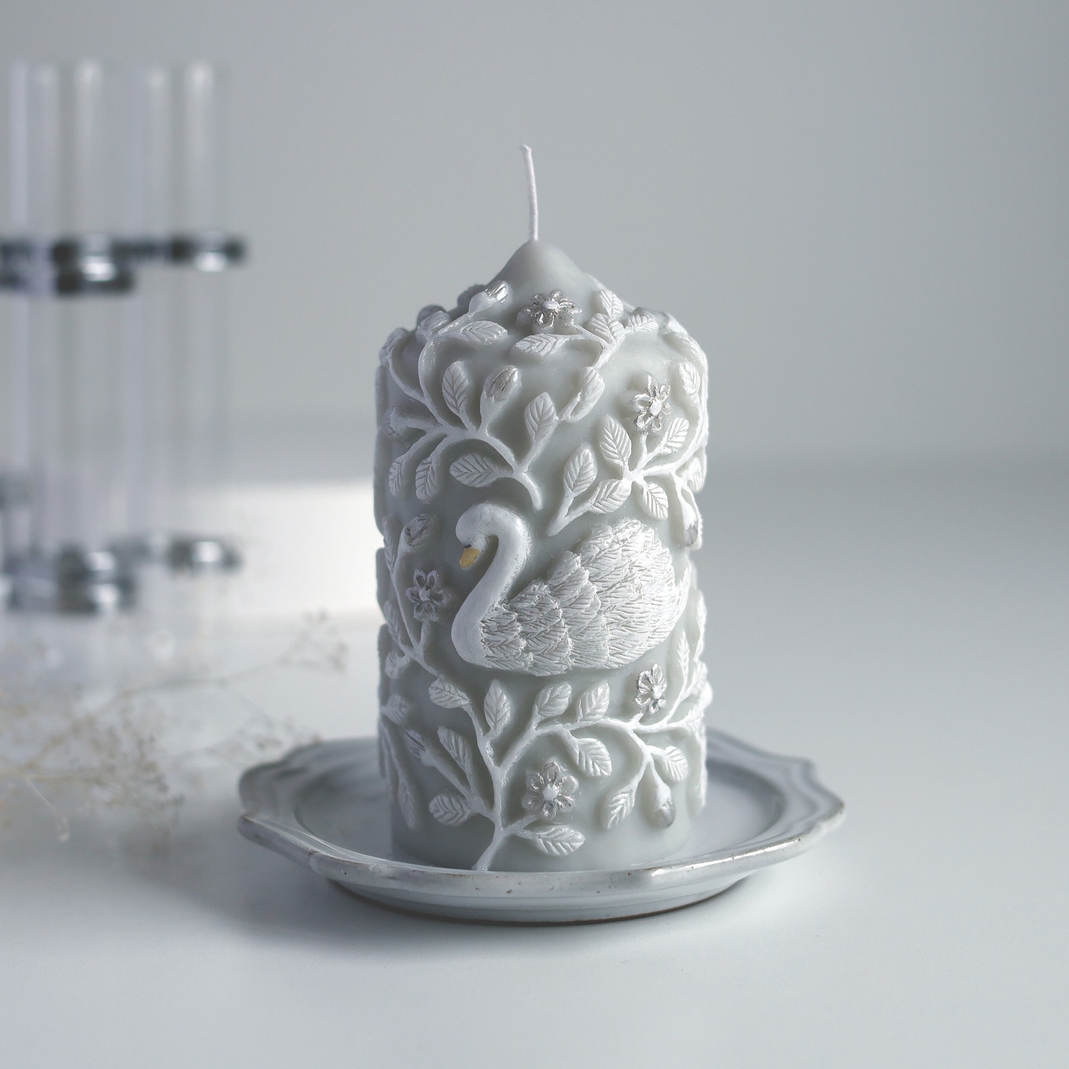 レリーフキャンドル「白鳥とクレマチス」グレー×ホワイト