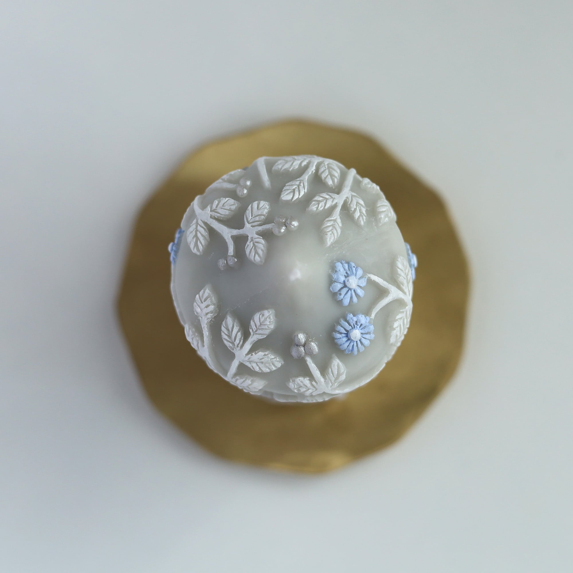 繊細な植物とかわいいうさぎのレリーフを施したキャンドルです